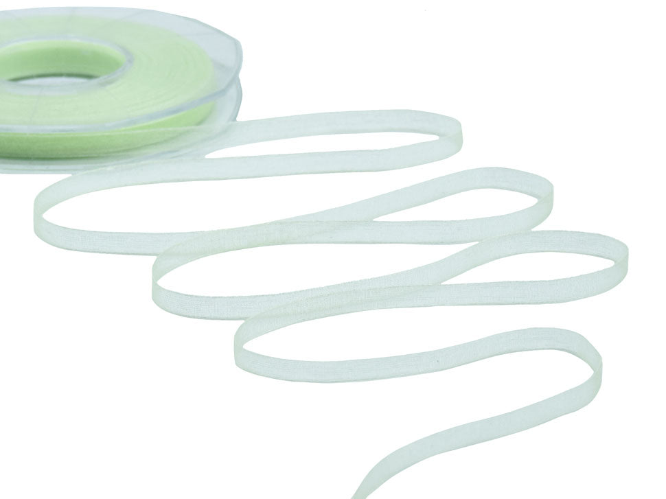 Organza 7mm Verde Mela Chiaro. Nastro in velo di organza, trasparente, perfetto per le nozze e la decorazione del matrimonio e nei pacchetti regalo. È tessuto con un filato di organza lucido. Codice colore #549 - CONFEZIONATO IN BOBINA DA METRI 50