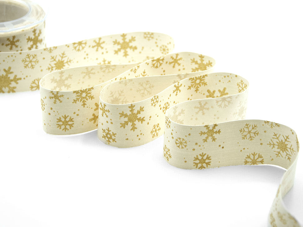 Policotone Stampa Serigrafica 35 mm Fiocchi di Neve glitter Oro. I nastri in policotone e dall’aspetto naturale sono in linea con le tendenze green per realizzare confezioni e decorazioni dall’effetto rustico o grezzo. Molto apprezzato per le sue caratteristiche sono i nastri in poliestere cotoniero. Opaco, dall’aspetto naturale, è piacevole al tatto perché è morbido e caldo, sembra leggermente felpato. Si lavora facilmente e viene usato sempre più spesso per le creazioni di confezioni di regalo di lusso, per le maniglie di shopper, per le creazioni di bomboniere, per le decorazioni natalizie, per gli addobbi floreali e per le confezioni alimentari. Apprezzato anche da importanti marchi di moda è stato scelto per la personalizzazione del loro nastro con logo. Come tutti i nostri nastri si annoda molto facilmente e al taglio non si sfilaccia. Il nastro in tessuto tipo cotone viene prodotta in un’ampia gamma di colori ed altezze ed è qui presentata nella variante stampata glitter. Codice colore# 21/102 - CONFEZIONATO IN BOBINA DA METRI 10