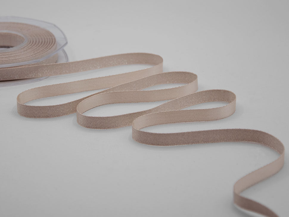 Raso Boutique Lame 10 MM Albicocca Chiaro. Questa magnifica variante del nostro doppio raso è caratterizzata dalla tramatura con filato lamè che da un lato dona un aspetto glitter al nastro, dall'altro un aspetto più elegante e raffinato con la presenza del lamè delicata e tenue. Il Raso lamé è adatto a tutte le confezioni per il Natale, alle nozze, alle celebrazioni eleganti e glamour.. Codice colore# 121 - CONFEZIONATO IN BOBINA DA METRI 20
