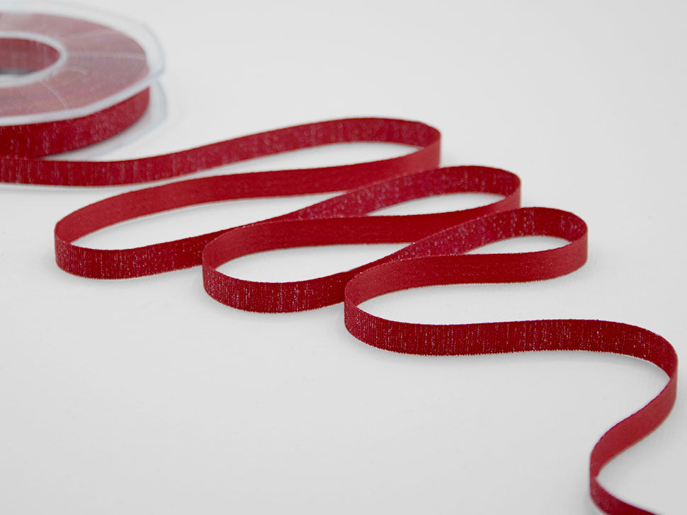 Raso Boutique Lame 10 MM Rosso. Questa magnifica variante del nostro doppio raso è caratterizzata dalla tramatura con filato lamè che da un lato dona un aspetto glitter al nastro, dall'altro un aspetto più elegante e raffinato con la presenza del lamè delicata e tenue. Il Raso lamé è adatto a tutte le confezioni per il Natale, alle nozze, alle celebrazioni eleganti e glamour.. Codice colore# 31 - CONFEZIONATO IN BOBINA DA METRI 20