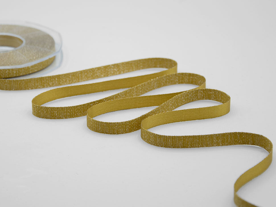 Raso Boutique Lame 10 MM Senape. Questa magnifica variante del nostro doppio raso è caratterizzata dalla tramatura con filato lamè che da un lato dona un aspetto glitter al nastro, dall'altro un aspetto più elegante e raffinato con la presenza del lamè delicata e tenue. Il Raso lamé è adatto a tutte le confezioni per il Natale, alle nozze, alle celebrazioni eleganti e glamour.. Codice colore# 1085 - CONFEZIONATO IN BOBINA DA METRI 20