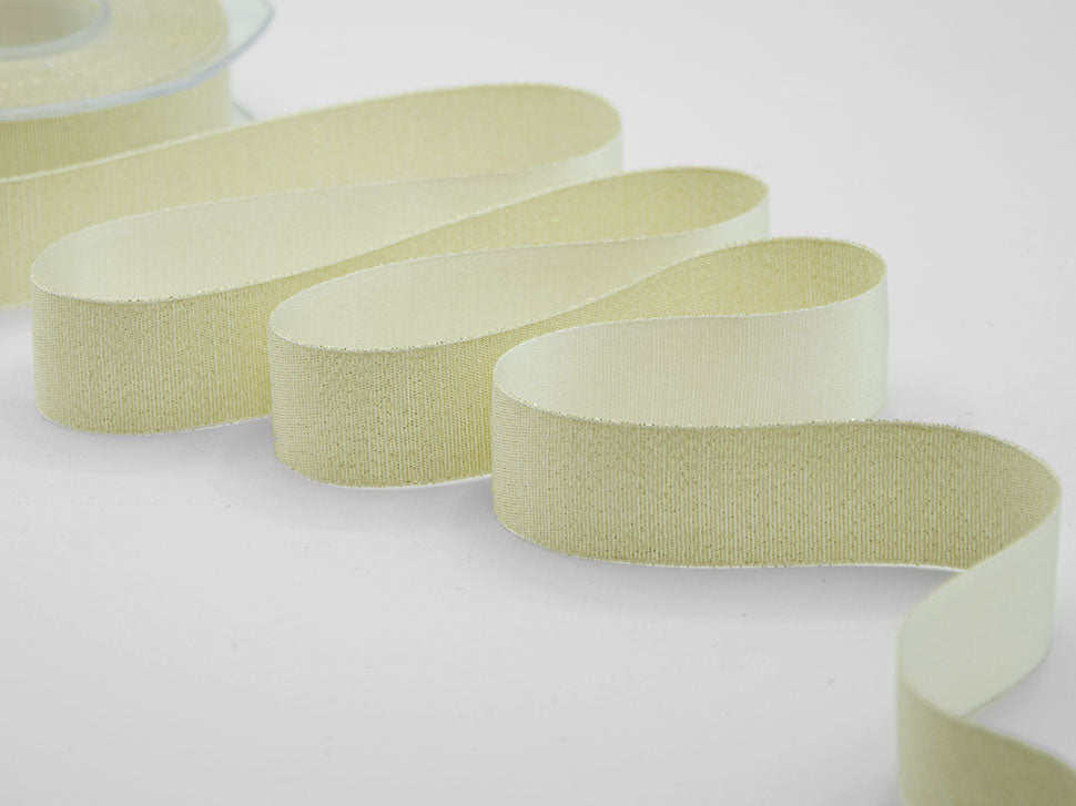 Raso Boutique Lame 25 MM Oro. Questa magnifica variante del nostro doppio raso è caratterizzata dalla tramatura con filato lamè che da un lato dona un aspetto glitter al nastro, dall'altro un aspetto più elegante e raffinato con la presenza del lamè delicata e tenue. Il Raso lamé è adatto a tutte le confezioni per il Natale, alle nozze, alle celebrazioni eleganti e glamour.. Codice colore# 102 - CONFEZIONATO IN BOBINA DA METRI 20
