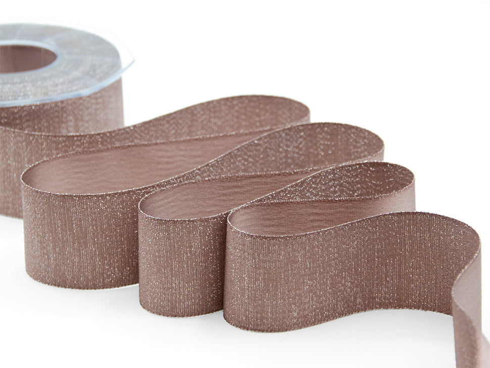 Raso Boutique Lame 40 MM Vinaccia Chiaro. Questa magnifica variante del nostro doppio raso è caratterizzata dalla tramatura con filato lamè che da un lato dona un aspetto glitter al nastro, dall'altro un aspetto più elegante e raffinato con la presenza del lamè delicata e tenue. Il Raso lamé è adatto a tutte le confezioni per il Natale, alle nozze, alle celebrazioni eleganti e glamour.. Codice colore# 56 - CONFEZIONATO IN BOBINA DA METRI 20
