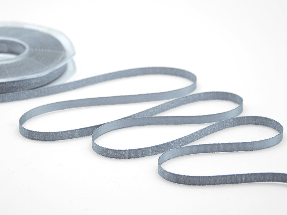 Raso Boutique Lame 6 MM Grigio Scuro. Questa magnifica variante del nostro doppio raso è caratterizzata dalla tramatura con filato lamè che da un lato dona un aspetto glitter al nastro, dall'altro un aspetto più elegante e raffinato con la presenza del lamè delicata e tenue. Il Raso lamé è adatto a tutte le confezioni per il Natale, alle nozze, alle celebrazioni eleganti e glamour.. Codice colore# 75 - CONFEZIONATO IN BOBINA DA METRI 20
