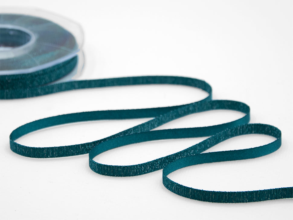 Raso Boutique Lame 6 MM Ottanio. Questa magnifica variante del nostro doppio raso è caratterizzata dalla tramatura con filato lamè che da un lato dona un aspetto glitter al nastro, dall'altro un aspetto più elegante e raffinato con la presenza del lamè delicata e tenue. Il Raso lamé è adatto a tutte le confezioni per il Natale, alle nozze, alle celebrazioni eleganti e glamour.. Codice colore# 65 - CONFEZIONATO IN BOBINA DA METRI 20