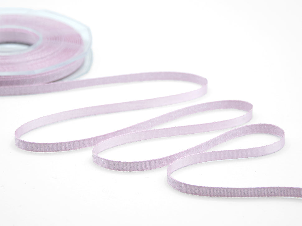 Raso Boutique Lame 6 MM Rosa Baby. Questa magnifica variante del nostro doppio raso è caratterizzata dalla tramatura con filato lamè che da un lato dona un aspetto glitter al nastro, dall'altro un aspetto più elegante e raffinato con la presenza del lamè delicata e tenue. Il Raso lamé è adatto a tutte le confezioni per il Natale, alle nozze, alle celebrazioni eleganti e glamour.. Codice colore# 20 - CONFEZIONATO IN BOBINA DA METRI 20