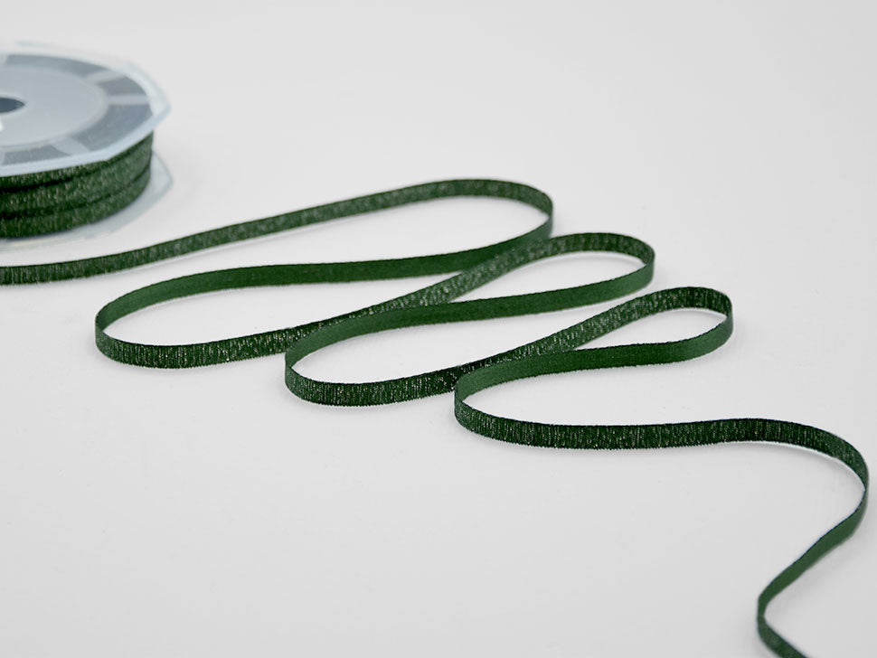 Raso Boutique Lame 6 MM Verde Inglese. Questa magnifica variante del nostro doppio raso è caratterizzata dalla tramatura con filato lamè che da un lato dona un aspetto glitter al nastro, dall'altro un aspetto più elegante e raffinato con la presenza del lamè delicata e tenue. Il Raso lamé è adatto a tutte le confezioni per il Natale, alle nozze, alle celebrazioni eleganti e glamour.. Codice colore# 633 - CONFEZIONATO IN BOBINA DA METRI 20