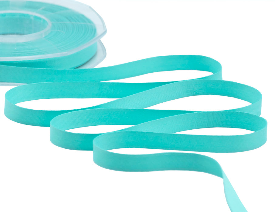 Raso Seta 10 mm Verde Acqua Marina. Il raso seta è un nastro molto delicato, adatto ad ogni tipo di confezionamento. Grazie alla sua leggerezza e setosità, può essere utilizzato nella creazione di bomboniere e decorazioni per cerimonie ed eventi eleganti. Le cimosse lisce e la sua texture opaca donano estrema morbidezza al nastro, rendendolo facile da lavorare e adatto alla realizzazione di fiocchi e rifiniture. Disponibile in diverse colorazioni e altezze, si presta a molteplici utilizzi. Codice colore # 64. Confezionato in bobina da 25 metri.