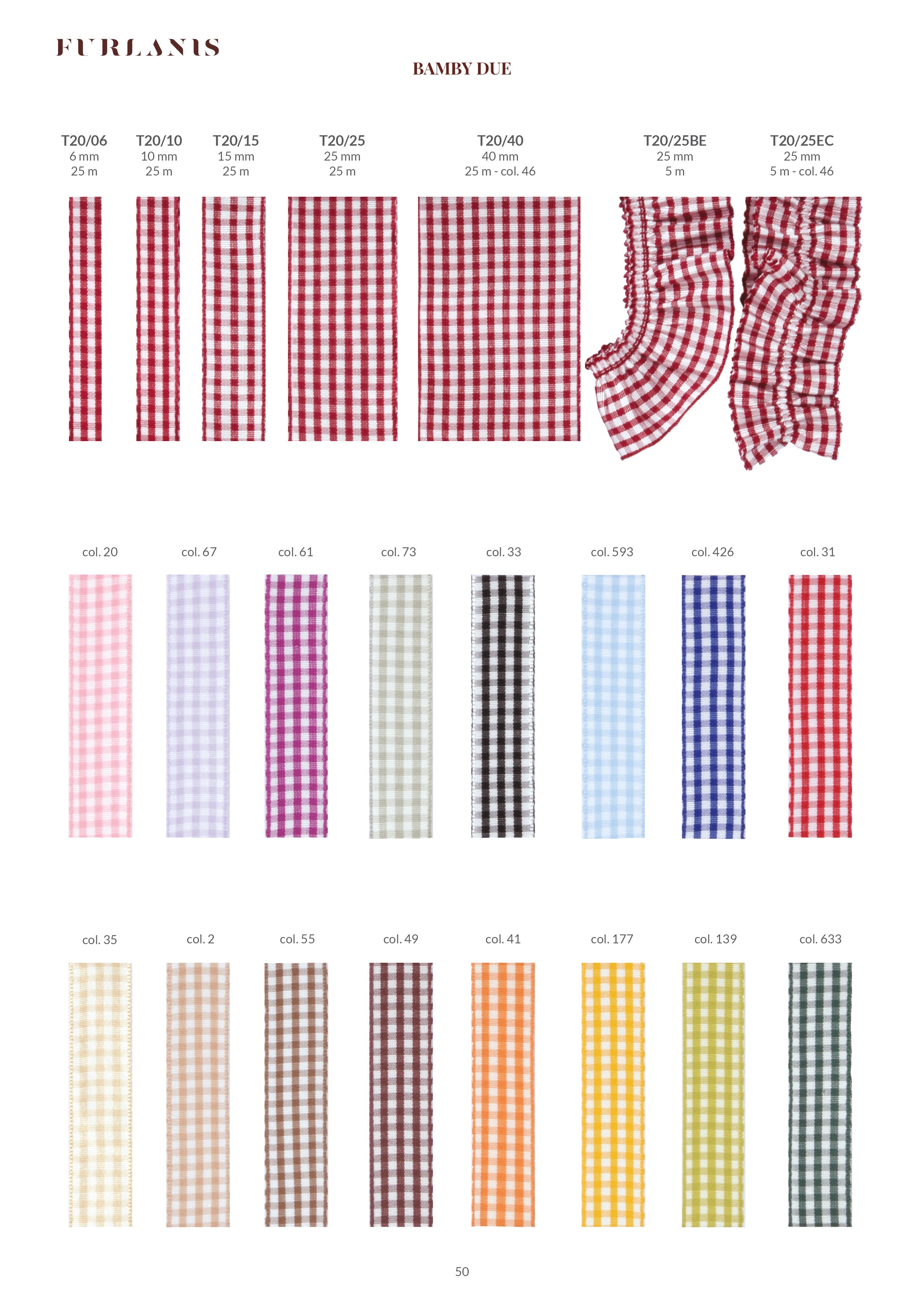 Bamby 10 MM Giallo Oro. Il Bamby è un nastro a quadretti, detto anche vichy, adatto agli utilizzi per le decorazioni dei bambini, come i fiocchi di nascita bimbo e bimba, oppure, negli altri colori, per confezioni country e rustiche. In questa versione è presentato con l'elastico su un bordo a formare una rouge molto comoda da applicare sui bordi. L’articolo T20/10 è un nastro con il motivo classico a quadri con bordi rifiniti più spessi