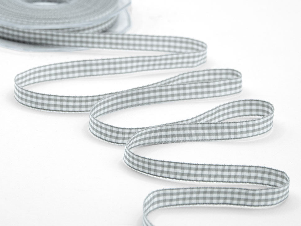 Bamby 10 MM Grigio Perla. Il Bamby è un nastro a quadretti, detto anche vichy, adatto agli utilizzi per le decorazioni dei bambini, come i fiocchi di nascita bimbo e bimba, oppure, negli altri colori, per confezioni country e rustiche. In questa versione è presentato con l'elastico su un bordo a formare una rouge molto comoda da applicare sui bordi. L’articolo T20/10 è un nastro con il motivo classico a quadri con bordi rifiniti più spessi Il nastro scozzese Vichy è un nastro semplice ma alla moda, facile da abbinare, può essere utilizzato con vari oggetti per creare un sapore retrò ed elegante. Il nastro T20 è realizzato con filato poliestere tinto in filo di alta qualità e ha la caratteristica di essere morbido al tatto, di non sbiadire al lavaggio e di avere un taglio netto e definito. Questo quadrettino è molto indicato per le realizzazioni dedicate ai più piccoli: dall’abbigliamento alla creazioni di bomboniere, usato invece nella variante di colore rosso il nastro Vichy è ideale per le decorazioni floreali, per la decorazione della casa, per la confezione dei pacchetti nei periodo di Natale, San Valentino e la festa della mamma. . Codice colore# 73 - CONFEZIONATO IN BOBINA DA METRI 25