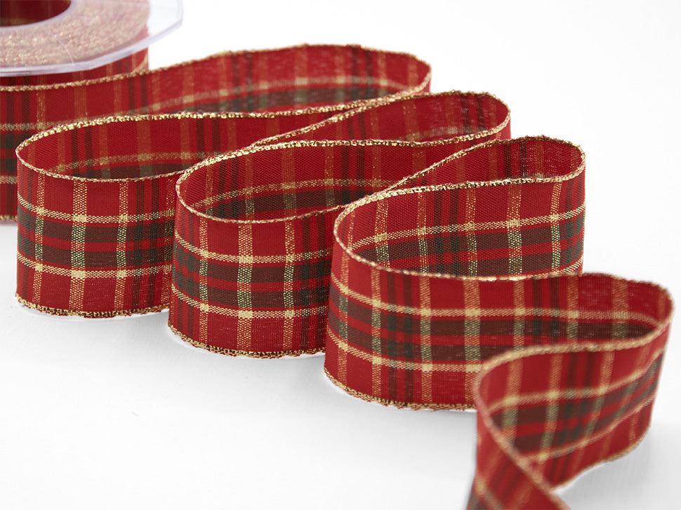 Noel 40 MM Rosso. Il nastro scozzese Noel T170 è un nastro natalizio alto 40mm, realizzato con filato poliestere tinto in filo, caratterizzato da un disegno a quadretti e una bordura in lamè: oro, oppure argento. E’ un nastro in tartan resistente, non è animato, ma ben apprettato in modo da essere modellato a nostro piacimento, al taglio il Nastro Noel non si sfilaccia, quindi è ideale per creare un bel fiocco natalizio. Il nastro Noel T17/40 può essere utilizzato per creare fiocchi per una ghirlanda o per l’albero di Natale, per confezionare graziosi pacchi regalo, per decorare la nostra casa o personalizzare oggetti fatti a mano, o dovunque ci sia bisogno di portare una deliziosa atmosfera natalizia.. Codice colore# 31 - CONFEZIONATO IN BOBINA DA METRI 20