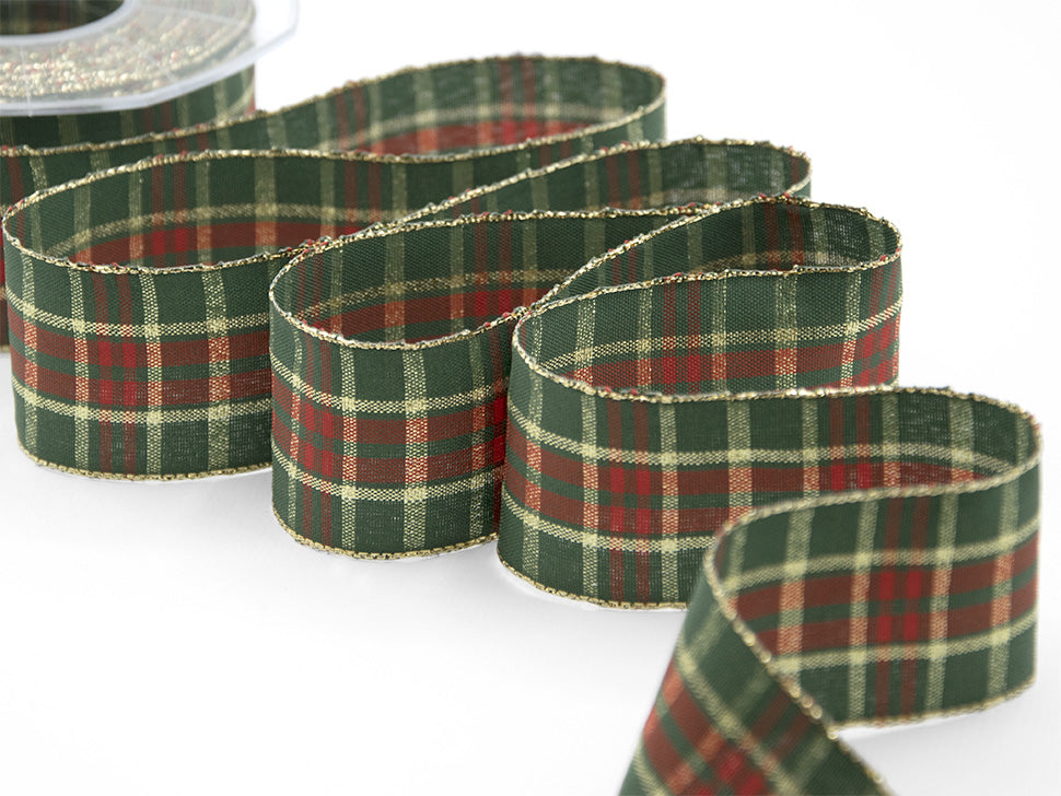 Noel 40 MM Verde Inglese. Il nastro scozzese Noel T170 è un nastro natalizio alto 40mm, realizzato con filato poliestere tinto in filo, caratterizzato da un disegno a quadretti e una bordura in lamè: oro, oppure argento. E’ un nastro in tartan resistente, non è animato, ma ben apprettato in modo da essere modellato a nostro piacimento, al taglio il Nastro Noel non si sfilaccia, quindi è ideale per creare un bel fiocco natalizio. Il nastro Noel T17/40 può essere utilizzato per creare fiocchi per una ghirlanda o per l’albero di Natale, per confezionare graziosi pacchi regalo, per decorare la nostra casa o personalizzare oggetti fatti a mano, o dovunque ci sia bisogno di portare una deliziosa atmosfera natalizia.. Codice colore# 633 - CONFEZIONATO IN BOBINA DA METRI 20