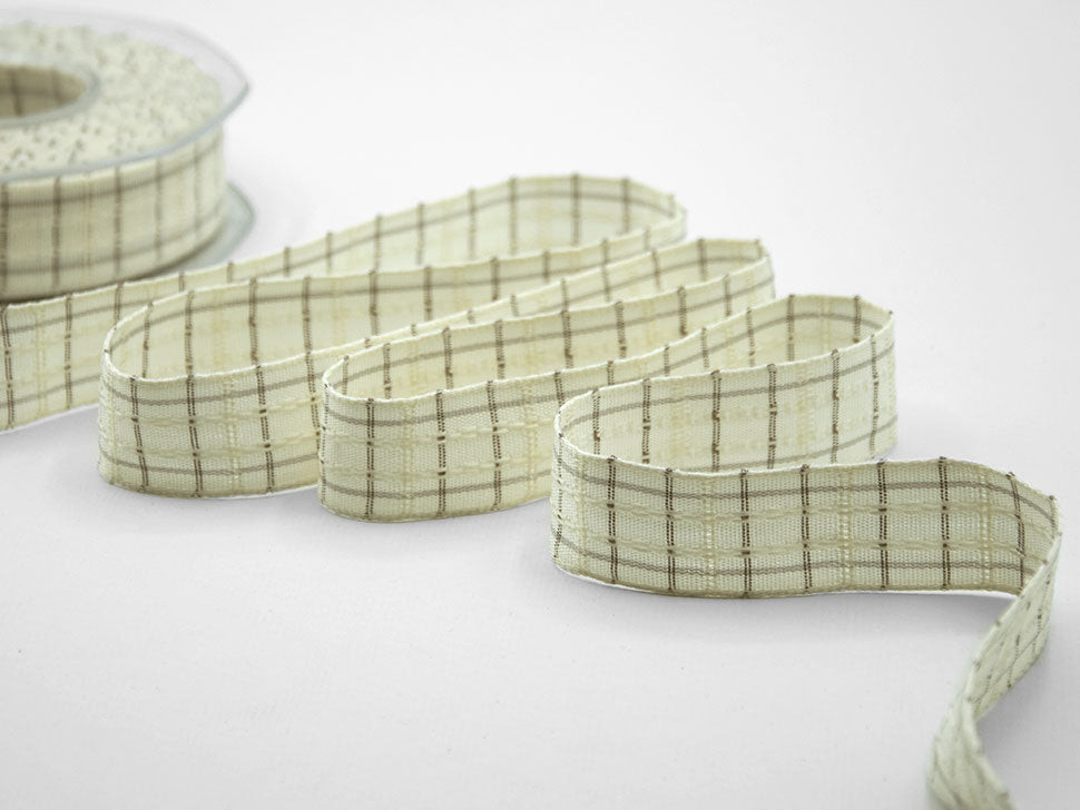 Scozzese Catenella 25 MM Avorio. E’ un nastro molto elegante, con colori classici, adatto in particolare ad eventi raffinati si ma nella natura, in campagna, nella casa o ristorante in mezzo al verde. Il nastro riporta alle Highlands scozzesi, alle feste di campagna dei signorotti locali, i prati verdi, le serate nel maniero quando festeggi il Natale in kilt. Un buon whisky, una buona birra e la tavola vestita con questi nastri. Nella versione lamè è festa, nella versione normale è amicizia, famiglia, calore del fuoco del caminetto o della stufa.. Codice colore# 35 - CONFEZIONATO IN BOBINA DA METRI 20