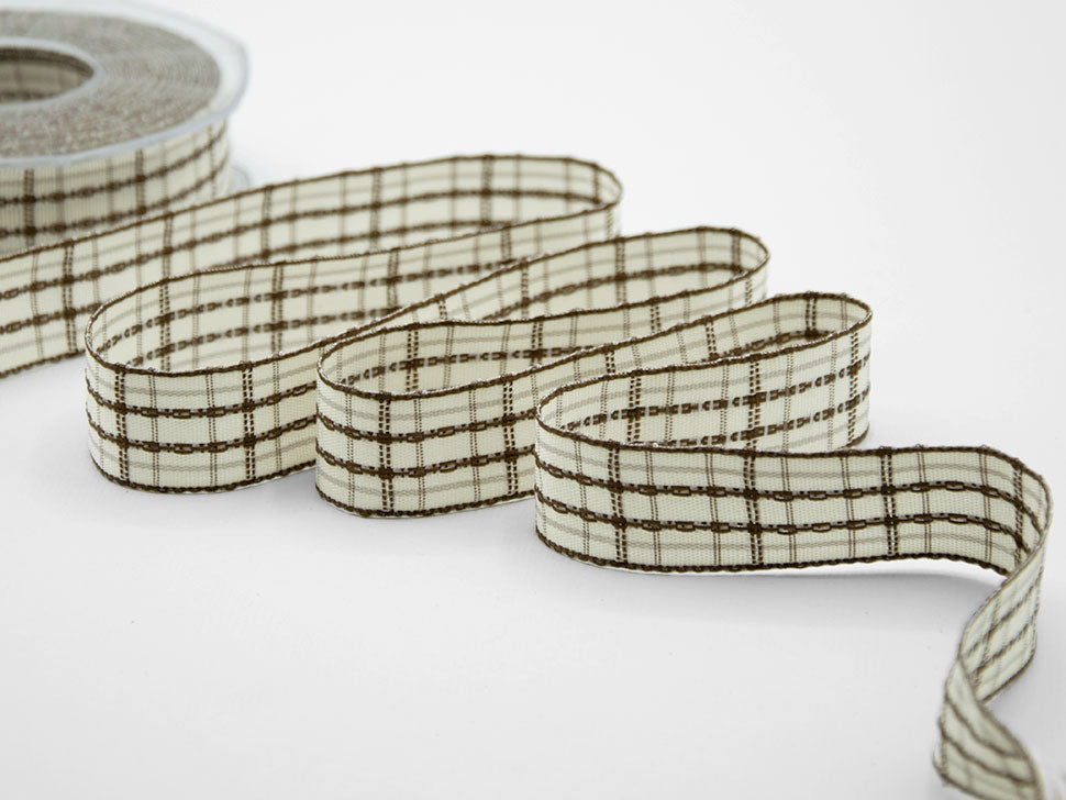 Scozzese Catenella 25 MM Marrone. E’ un nastro molto elegante, con colori classici, adatto in particolare ad eventi raffinati si ma nella natura, in campagna, nella casa o ristorante in mezzo al verde. Il nastro riporta alle Highlands scozzesi, alle feste di campagna dei signorotti locali, i prati verdi, le serate nel maniero quando festeggi il Natale in kilt. Un buon whisky, una buona birra e la tavola vestita con questi nastri. Nella versione lamè è festa, nella versione normale è amicizia, famiglia, calore del fuoco del caminetto o della stufa.. Codice colore# 44 - CONFEZIONATO IN BOBINA DA METRI 20