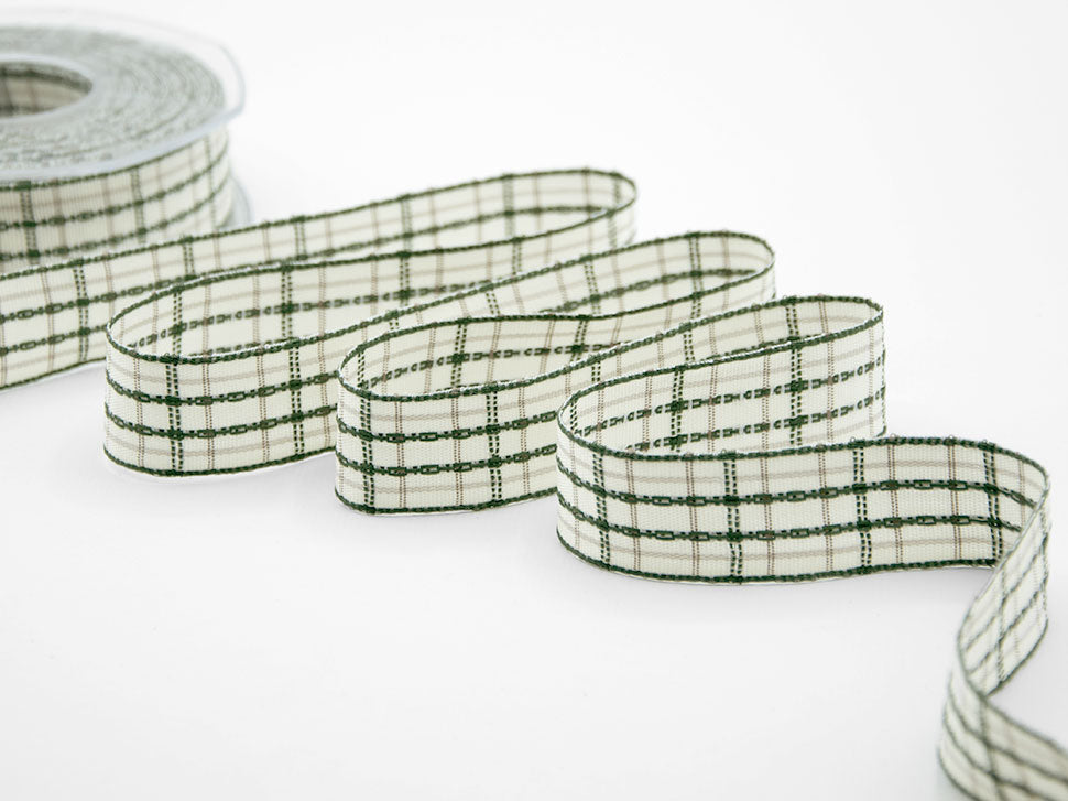 Scozzese Catenella 25 MM Verde Inglese. E’ un nastro molto elegante, con colori classici, adatto in particolare ad eventi raffinati si ma nella natura, in campagna, nella casa o ristorante in mezzo al verde. Il nastro riporta alle Highlands scozzesi, alle feste di campagna dei signorotti locali, i prati verdi, le serate nel maniero quando festeggi il Natale in kilt. Un buon whisky, una buona birra e la tavola vestita con questi nastri. Nella versione lamè è festa, nella versione normale è amicizia, famiglia, calore del fuoco del caminetto o della stufa.. Codice colore# 633 - CONFEZIONATO IN BOBINA DA METRI 20