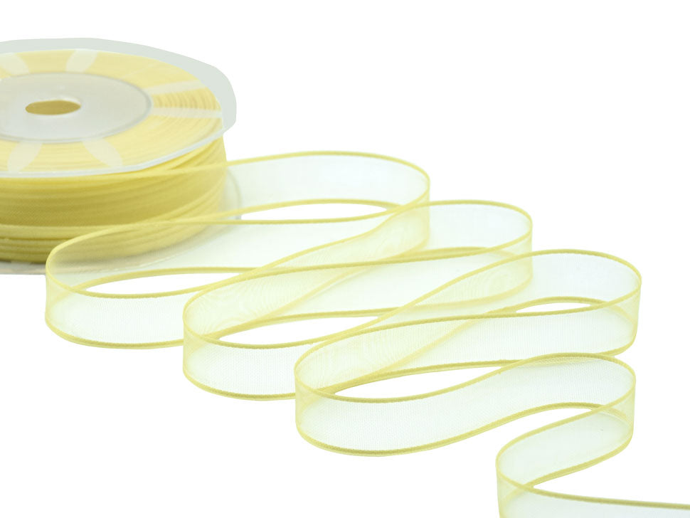 Velo Bordi Raso 15 MM Giallo. E’ un nastro che dura per sempre. Classico, con le sue sei diverse altezze e ventotto colori, puoi adattarlo a tutte le necessità per i tuoi regali, feste, avvenimenti, eventi. La struttura del nastro stesso offre riflessi bellissimi che danno vita ad un sentimento di allegria e spensieratezza. Il nastro velo bordi raso è un tessuto sottile e trasparente che con i suoi bordi rinforzati e lucidi permette di realizzare fiocchi ben definiti ed eleganti.