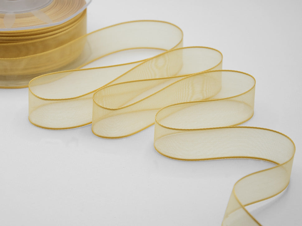 Velo Bordi Raso 25 MM Giallo Oro. E’ un nastro che dura per sempre. Classico, con le sue sei diverse altezze e ventotto colori, puoi adattarlo a tutte le necessità per i tuoi regali, feste, avvenimenti, eventi. La struttura del nastro stesso offre riflessi bellissimi che danno vita ad un sentimento di allegria e spensieratezza. Il nastro velo bordi raso è un tessuto sottile e trasparente che con i suoi bordi rinforzati e lucidi permette di realizzare fiocchi ben definiti ed eleganti.