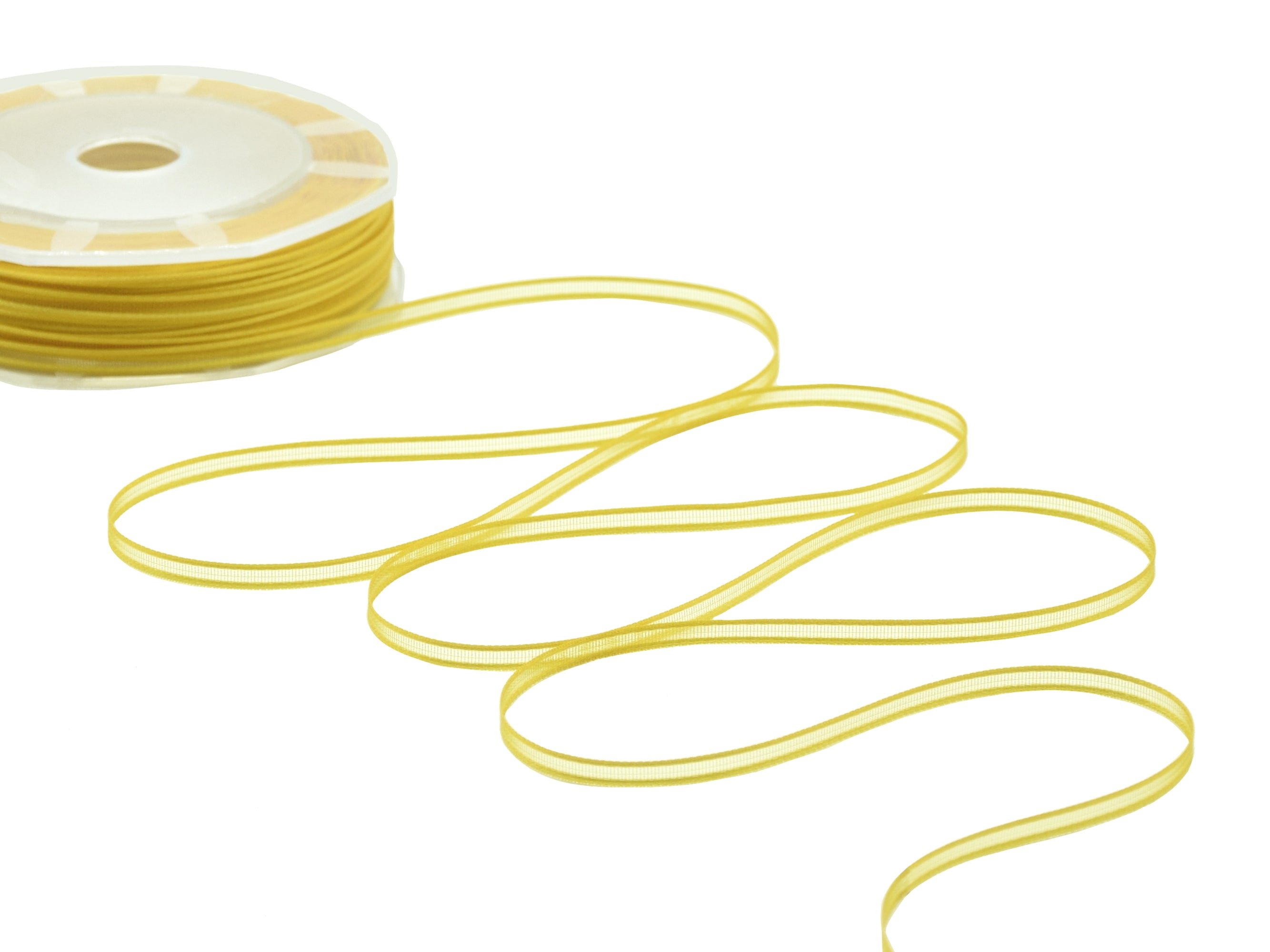 Velo Bordi Raso 3 MM Giallo. E’ un nastro che dura per sempre. Classico, con le sue sei diverse altezze e ventotto colori, puoi adattarlo a tutte le necessità per i tuoi regali, feste, avvenimenti, eventi. La struttura del nastro stesso offre riflessi bellissimi che danno vita ad un sentimento di allegria e spensieratezza. Il nastro velo bordi raso è un tessuto sottile e trasparente che con i suoi bordi rinforzati e lucidi permette di realizzare fiocchi ben definiti ed eleganti.