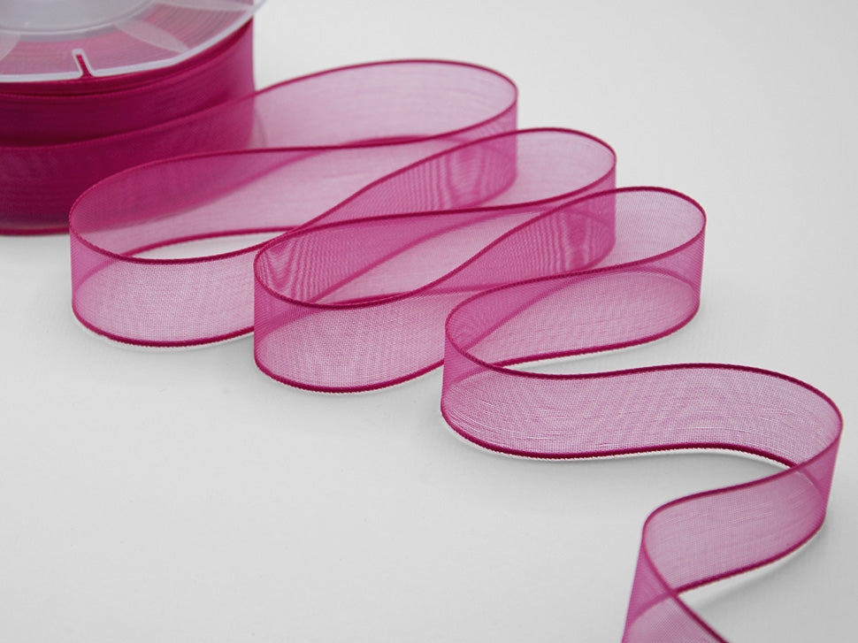 Velo Bordi Raso 40 MM Fuxia Peonia. E’ un nastro che dura per sempre. Classico, con le sue sei diverse altezze e ventotto colori, puoi adattarlo a tutte le necessità per i tuoi regali, feste, avvenimenti, eventi. La struttura del nastro stesso offre riflessi bellissimi che danno vita ad un sentimento di allegria e spensieratezza. Il nastro velo bordi raso è un tessuto sottile e trasparente che con i suoi bordi rinforzati e lucidi permette di realizzare fiocchi ben definiti ed eleganti.