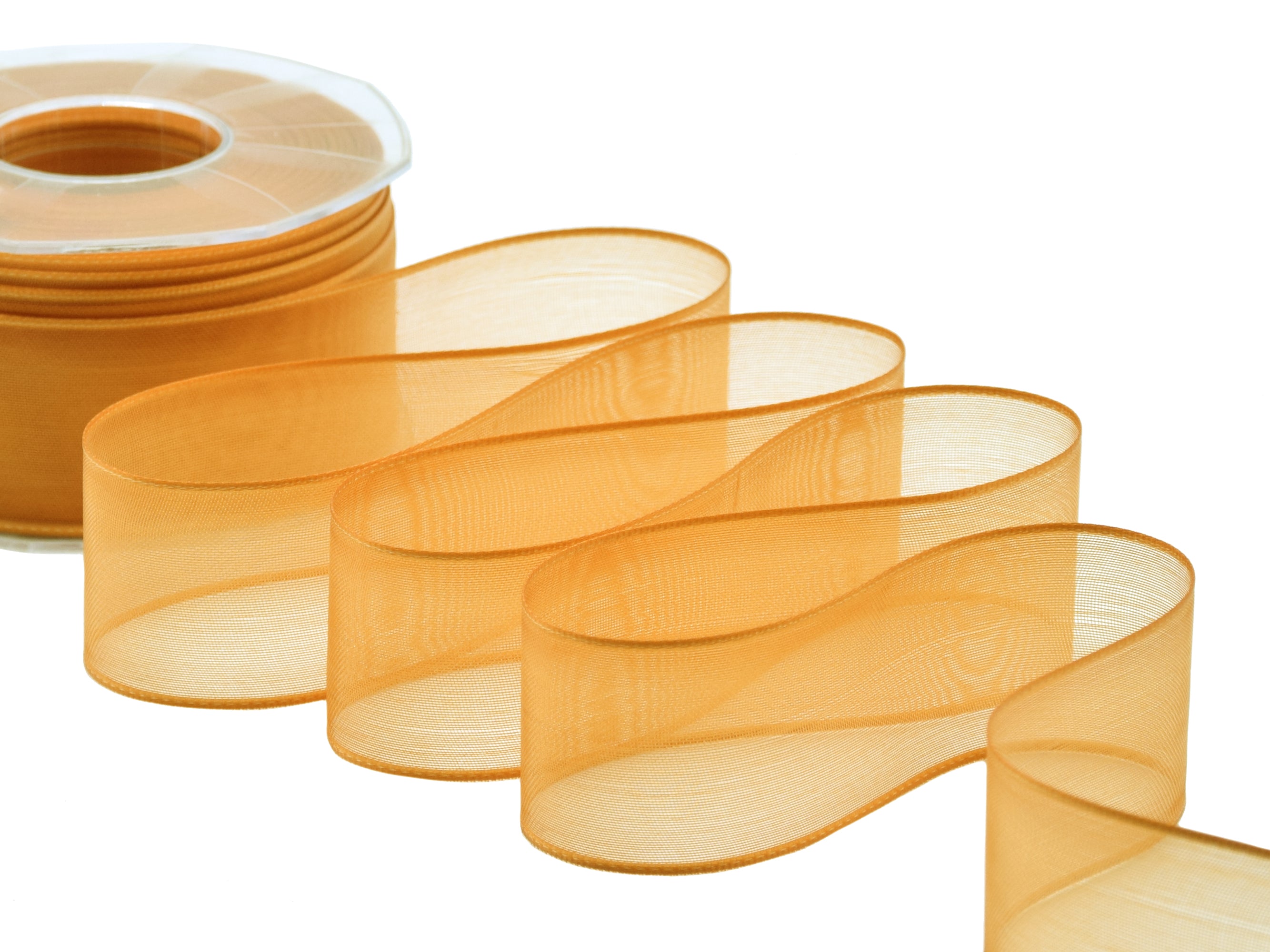 Velo Bordi Raso 40 MM Giallo Oro. E’ un nastro che dura per sempre. Classico, con le sue sei diverse altezze e ventotto colori, puoi adattarlo a tutte le necessità per i tuoi regali, feste, avvenimenti, eventi. La struttura del nastro stesso offre riflessi bellissimi che danno vita ad un sentimento di allegria e spensieratezza. Il nastro velo bordi raso è un tessuto sottile e trasparente che con i suoi bordi rinforzati e lucidi permette di realizzare fiocchi ben definiti ed eleganti.