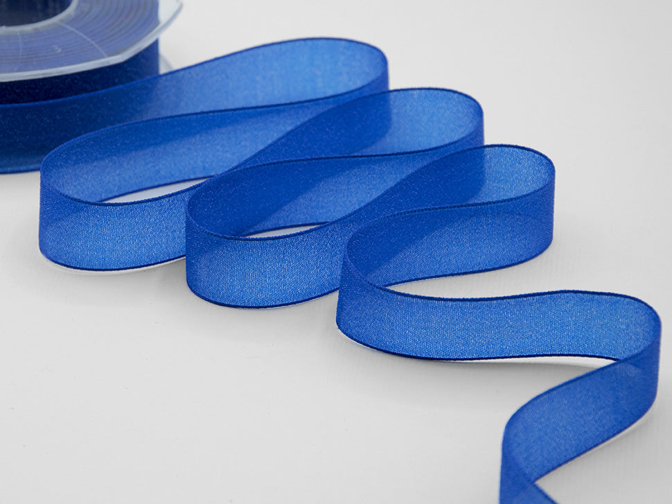Velo Luminoso 40 MM Blu Cina. Il velo luminoso è un nastro dall’aspetto cangiante, iridato, luminoso, perché è tessuto con filato iridescente.