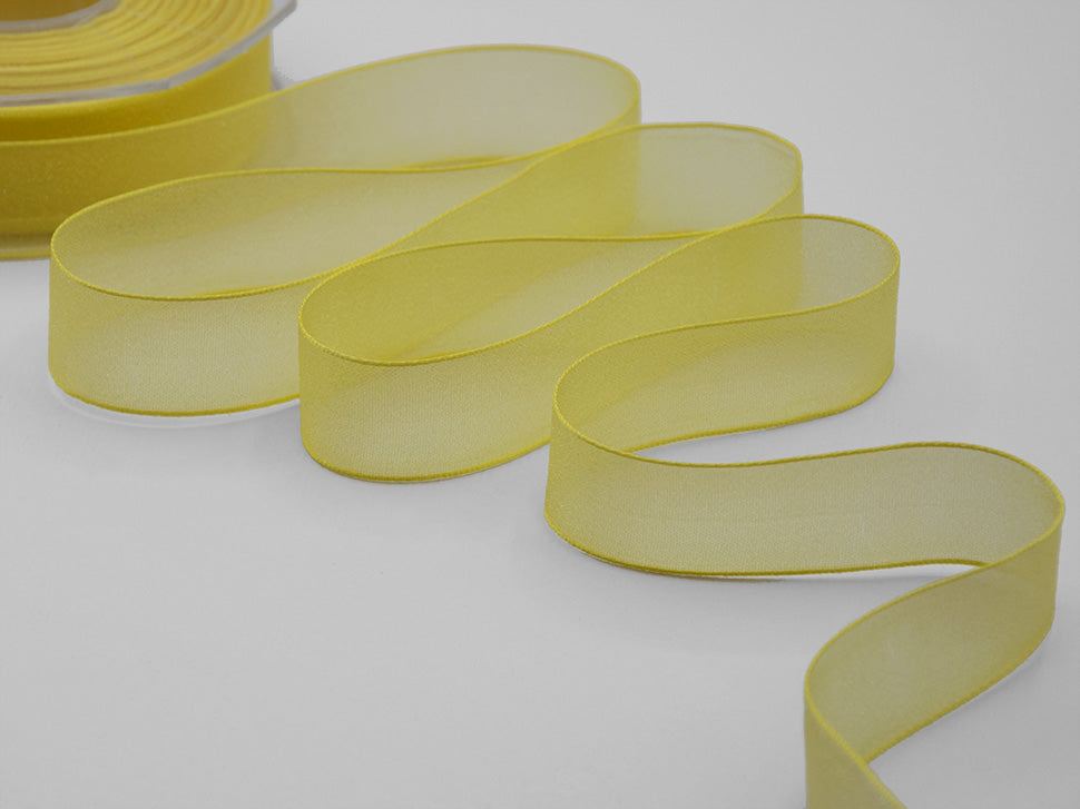 Velo Luminoso 40 MM Giallo. Il velo luminoso è un nastro dall’aspetto cangiante, iridato, luminoso, perché è tessuto con filato iridescente.