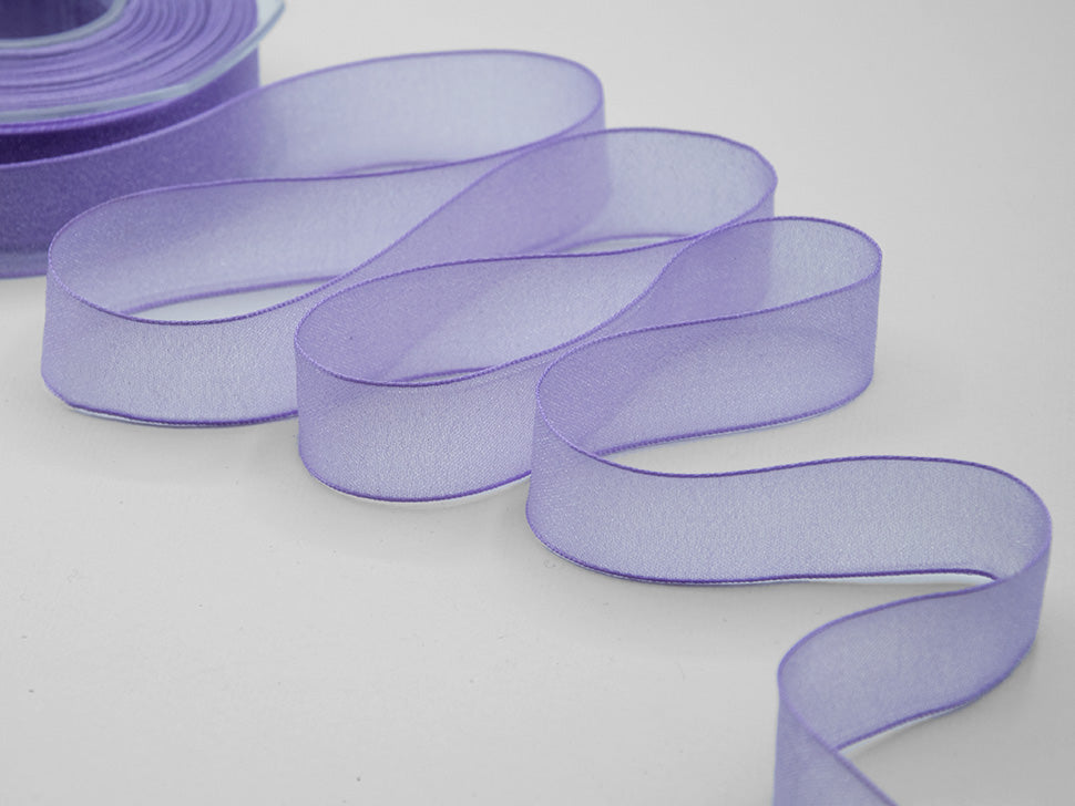 Velo Luminoso 40 MM Lilla. Il velo luminoso è un nastro dall’aspetto cangiante, iridato, luminoso, perché è tessuto con filato iridescente.