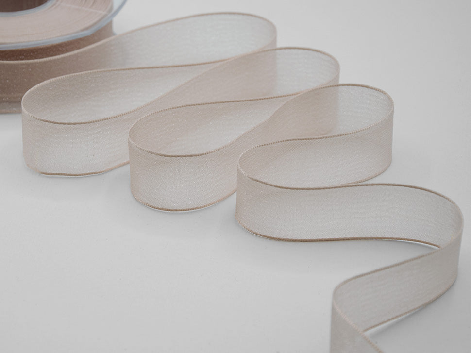 Velo Luminoso 6 MM Rosa Cipria. Il velo luminoso è un nastro dall’aspetto cangiante, iridato, luminoso, perché è tessuto con filato iridescente.