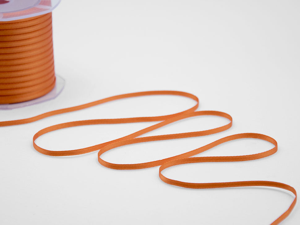 The elegant and refined ribbon by definition is double satin. It is versatile and beautiful to work with and, in its simplicity, it lends itself to any use. Being a high quality product it knots very easily forming a nice bow with the tails that have a clean and defined cut, which does not fray. Its appearance is bright, consistent and full-bodied, but to the touch it is decidedly delicate and silky. Its 3mm high and the infinite possibilities of customization make it an ideal ribbon for multiple uses: from the packaging of wedding favors and ceremonies to the decoration of flowers and the table; from gift packages, including Christmas, to all prestigious events. The spool contains 100 meters of 3mm double satin ribbon. Available in a wide range of shades and heights, it is presented here in the color 41, peach orange