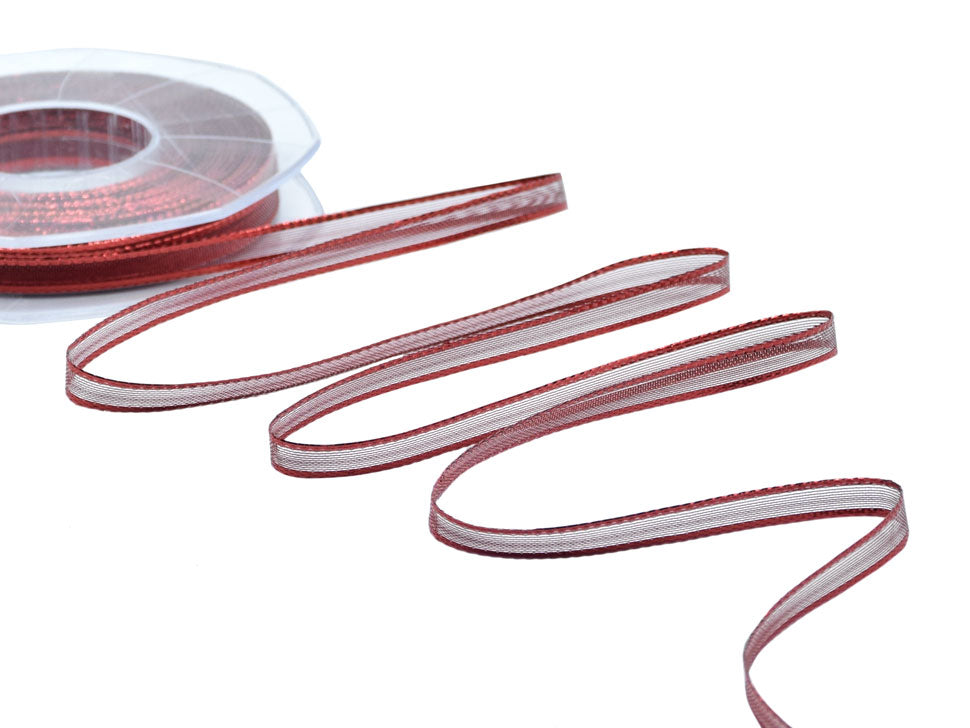 Veil Lame 6 MM Red. The lamé veil ribbon is a fabric with a thin and transparent texture, very bright and sparkling. Elegantly designed, the lamé tape roll can be used for a variety of purposes. Nice to work with, we can create beautiful bows for elegant and expensive packaging, create Christmas decorations for the home and garden, customize wedding favors. The decorative lamé ribbon is made with 100% polyester yarn, with a simply thicker edge contains a light, shiny and soft texture, offers a luxurious look and an ethereal feel .. Color Code # 31 - PACKED IN 25 METERS SPOOL