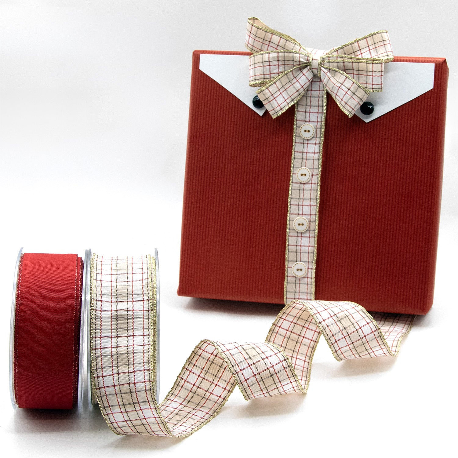 40mm Beige/Red Tartan Kilt Ribbon. Tartan Kilt Ribbon is a Christmas ribbon made of polyester yarn, featuring a checked design. It's a durable tartan ribbon, not fluted, but well-primed so it can be shaped to your liking. When cut, Tartan Kilt Ribbon doesn't fray, making it ideal for creating a beautiful Christmas bow. The ribbon can be used to create bows for a wreath or Christmas tree, to wrap pretty gift packages, to decorate our home or personalize handmade items, or wherever there is a need to bring a delightful Christmas atmosphere.. Color code #2/31 - PACKAGED IN A 20 METER ROLL