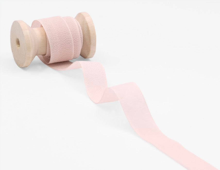Crêpe Silk Effect Powder Pink 15mm. The chiffon tape looks very delicate and light, soft to the touch as a silk tape. High quality because it produced in 100% polyester yarn, is characterized by a matte and semi-transparent texture. Combine it to your floral bouquets, your paper invitations, to create an original placeholder or for an ultra refined packaging. Color code # 52 - Packaged in a reel from 25 meters