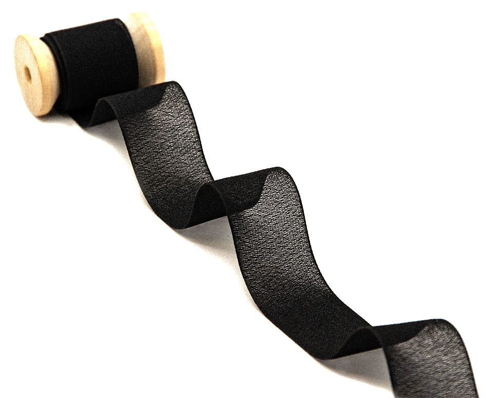 Black Silk Effect Crêpe Ribbon, 25mm. This chiffon ribbon has a very delicate and lightweight appearance, soft to the touch like silk. Made from high-quality 100% polyester yarn, it features a matte, semi-transparent texture. Pair it with your floral bouquets, paper invitations, to create original place cards, or for ultra-refined packaging. Color Code #33 - PACKAGED IN A 25-METER SPOOL