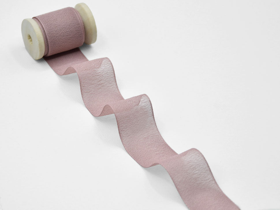 Crêpe Silk Effect Dark Powder 25mm. The chiffon tape looks very delicate and light, soft to the touch as a silk tape. High quality because it produced in 100% polyester yarn, is characterized by a matte and semi-transparent texture. Combine it to your floral bouquets, your paper invitations, to create an original placeholder or for an ultra refined packaging. Color code # 552 - packaged in a reel from 25 meters