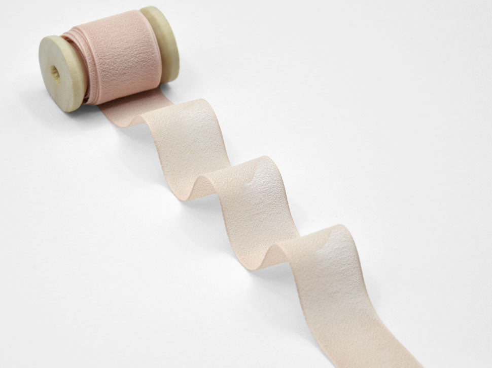 Crêpe Silk Effect Powder Pink 25mm. The chiffon tape looks very delicate and light, soft to the touch as a silk tape. High quality because it produced in 100% polyester yarn, is characterized by a matte and semi-transparent texture. Combine it to your floral bouquets, your paper invitations, to create an original placeholder or for an ultra refined packaging. Color code # 52 - Packaged in a reel from 25 meters
