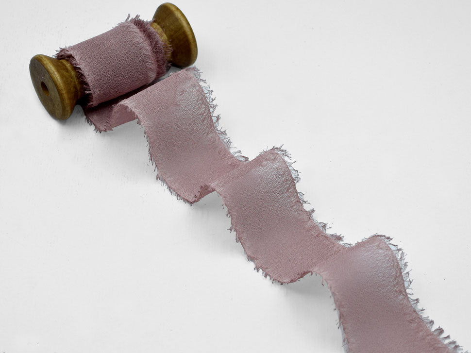 Crêpe Silk Effect Fringed Dark powder 40mm. The chiffon tape looks very delicate and light, soft to the touch as a silk tape. High quality because it produced in 100% polyester yarn, it is characterized by a matte and semi-transparent texture and frayed edges. Combine it to your floral bouquets, your paper invitations, to create an original placeholder or for an ultra refined packaging. Color code # 552 - packaged in a reel from 25 meters