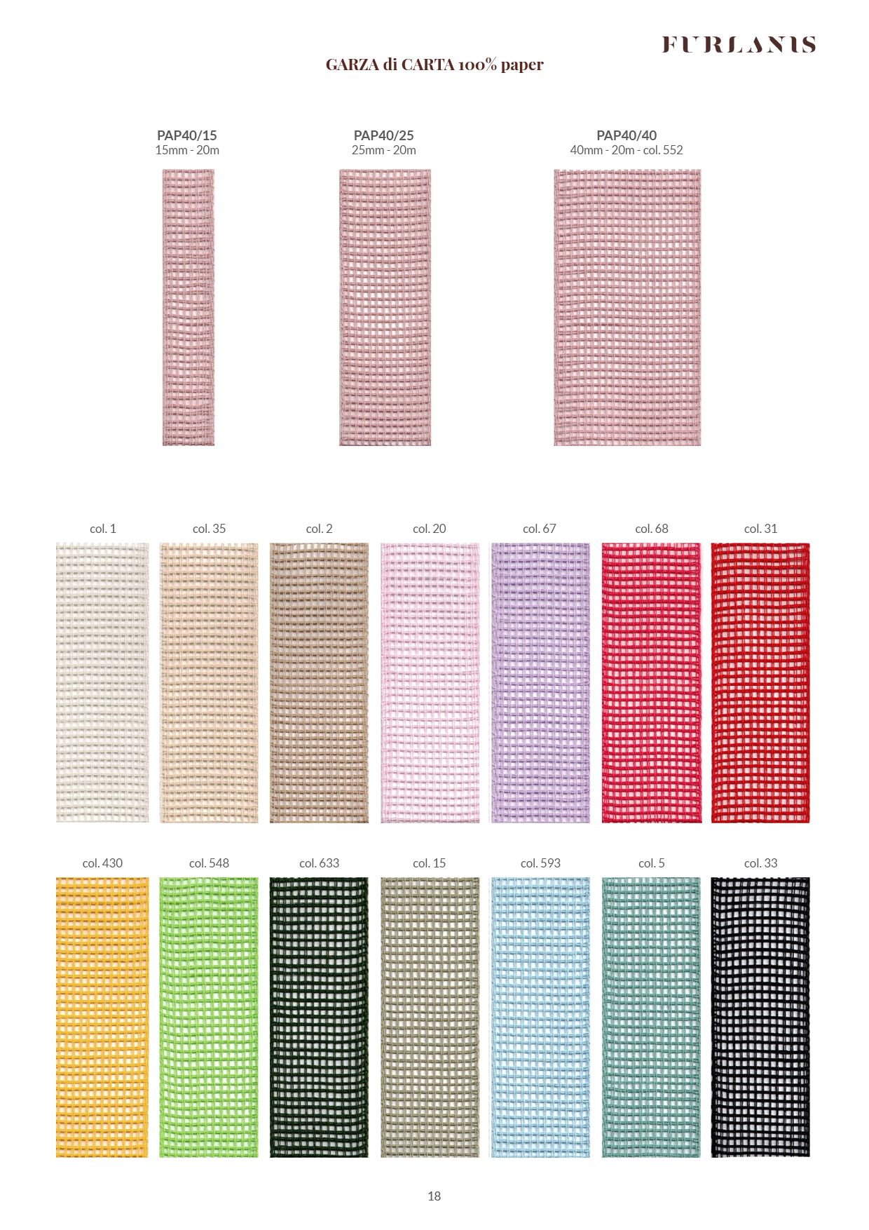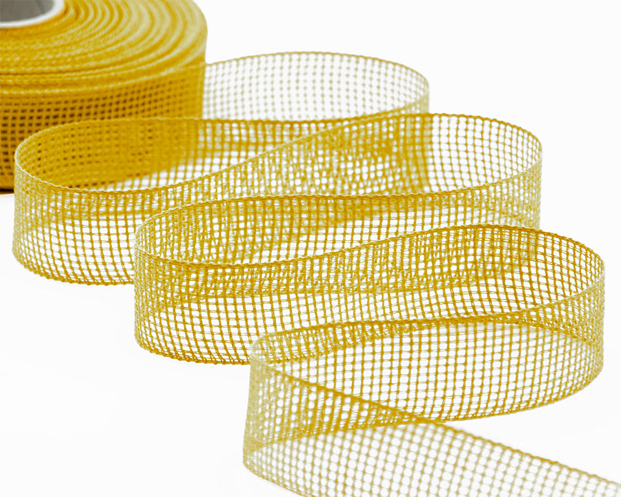 25mm Sulfur Paper Gauze. The paper gauze has a wide mesh structure that allows for the creation of structured, lightweight bows. The textured paper gives the ribbon a natural feel and is particularly suitable for gift wrapping and 100% green floral arrangements. Our paper ribbons and cords are eco-sustainable products as they can be completely reused in the paper. Color code #430. Packaged in 20-meter reels.
