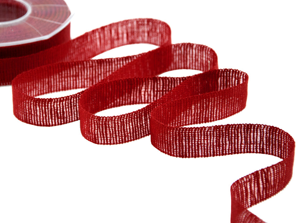 Linen 30 MM Red. It is a very precious ribbon, in pure linen, synonymous with nature, reminiscent of the sheets of the grandmother's kit. It looks rough, but it's not, it's very easy to work with. It has a warm, classic and simple color range. With a rustic appearance, it is actually very elegant and combines the ancient with the modern, the natural tradition with the most refined elegance. It is the ideal complement for handcrafted products and can also be used very well in the most elegant ceremonies for which a lamé version is also available. This tape conveys warmth and simplicity. The ribbons in pure natural linen are very characteristic thanks to their natural colors and their rustic and elegant appearance, perfect for giving a chic and natural effect to any type of decoration. Just play with your imagination and use these straps for the realization of various DIY and craft projects; they are perfect for the rustic, country, vintage and shabby theme and for making favors: baptism, communion, confirmation, graduation, wedding, eighteenth, engagement. Products with high quality material. Color code # 31 - PACKED IN 15 METERS REEL