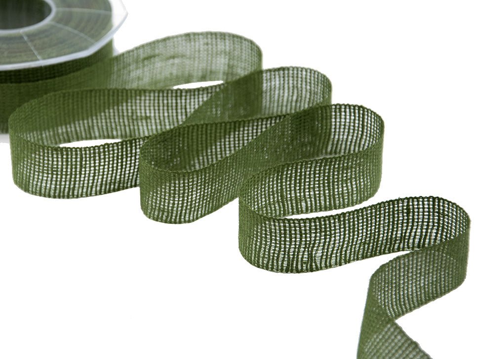 Linen 30 MM Smile Green. It is a very precious ribbon, in pure linen, synonymous with nature, reminiscent of the sheets of grandma's kit. It looks rough, but it's not, it's very easy to work with. It has a warm, classic and simple color range. With a rustic appearance, it is actually very elegant and combines the ancient with the modern, the natural tradition with the most refined elegance. It is the ideal complement for handicrafts and can be used very well even in the most elegant ceremonies for which there is also a lame version. This tape conveys warmth and simplicity. The ribbons in pure natural linen are very characteristic thanks to their natural colors and their rustic and elegant appearance, perfect to give a chic and natural effect to any type of decoration. Just play with your imagination and use these fetishes for the realization of various DIY and craft projects; they are perfect for the rustic, country, vintage and shabby theme and for the creation of favors: baptism, communion, confirmation, graduation, wedding, eighteenth, engagement. Products with high quality material. Color Code# 1354 - PACKED IN 15-METER COIL