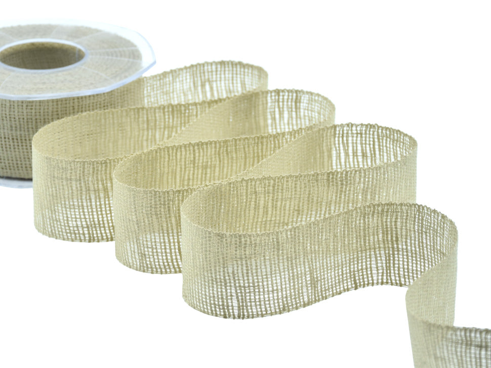Linen 45 MM Sage. It is a very precious ribbon, in pure linen, synonymous with nature, reminiscent of the sheets of grandma's kit. It looks rough, but it's not, it's very easy to work with. It has a warm, classic and simple color range. With a rustic appearance, it is actually very elegant and combines the ancient with the modern, the natural tradition with the most refined elegance. It is the ideal complement for handicrafts and can be used very well even in the most elegant ceremonies for which there is also a lame version. This tape conveys warmth and simplicity. The ribbons in pure natural linen are very characteristic thanks to their natural colors and their rustic and elegant appearance, perfect to give a chic and natural effect to any type of decoration. Just play with your imagination and use these fetishes for the realization of various DIY and craft projects; they are perfect for the rustic, country, vintage and shabby theme and for the creation of favors: baptism, communion, confirmation, graduation, wedding, eighteenth, engagement. Products with high quality material. Color Code# 15 - PACKED IN 15 METER COIL