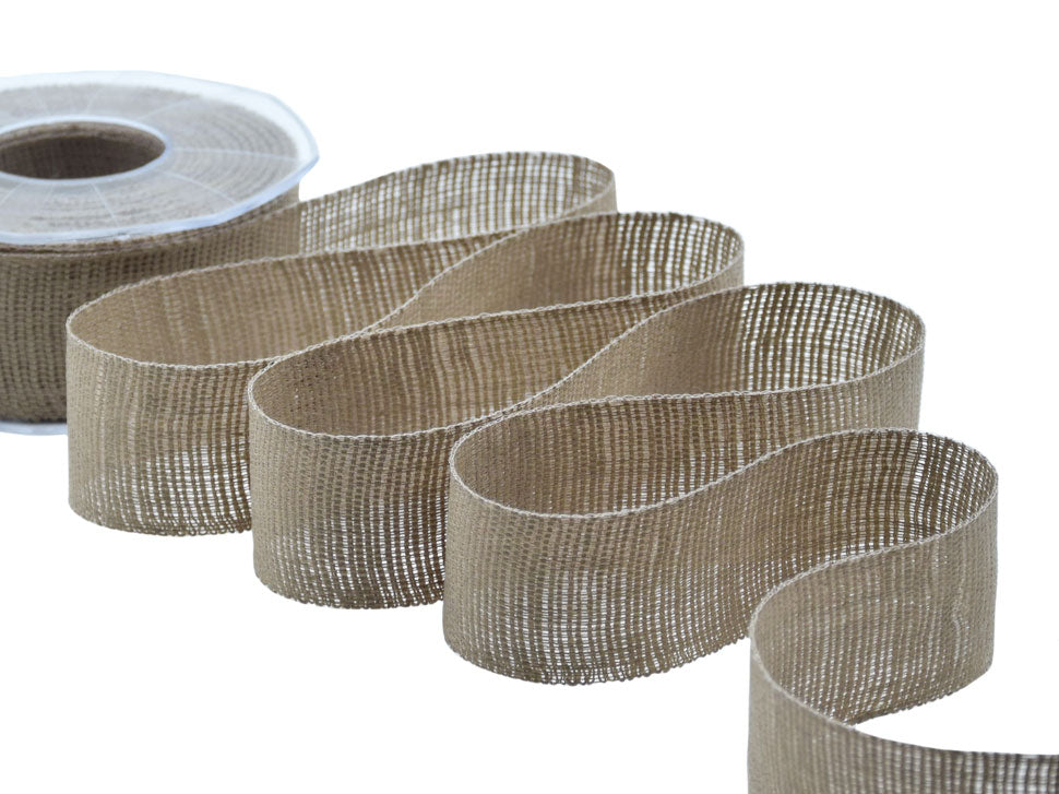 Linen 45 MM Turtledove. It is a very precious ribbon, in pure linen, synonymous with nature, reminiscent of the sheets of the grandmother's kit. It looks rough, but it's not, it's very easy to work with. It has a warm, classic and simple color range. With a rustic appearance, it is actually very elegant and combines the ancient with the modern, the natural tradition with the most refined elegance. It is the ideal complement for handcrafted products and can also be used very well in the most elegant ceremonies for which a lamé version is also available. This tape conveys warmth and simplicity. The ribbons in pure natural linen are very characteristic thanks to their natural colors and their rustic and elegant appearance, perfect for giving a chic and natural effect to any type of decoration. Just play with your imagination and use these straps for the realization of various DIY and craft projects; they are perfect for the rustic, country, vintage and shabby theme and for making favors: baptism, communion, confirmation, graduation, wedding, eighteenth, engagement. Products with high quality material. Color code # 54 - PACKED IN 15 METERS REEL