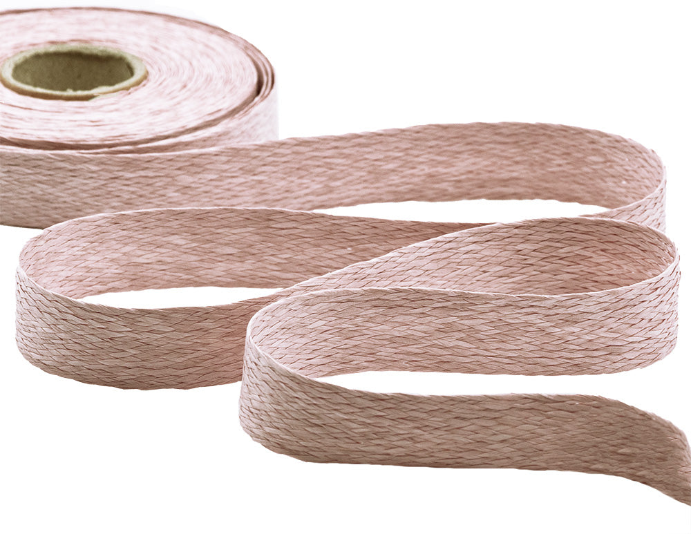 25mm Baby Pink Woven Paper Ribbon. This woven paper ribbon is ideal for wrapping gifts and floral arrangements. 100% green. It can be used as a simple ribbon or stretched to create a net. The textured feel of the paper gives the ribbon a particularly natural feel. Our paper ribbons and cords are eco-friendly products as they can be completely wrapped in paper. Color code #20. Packaged in 10-meter reels.