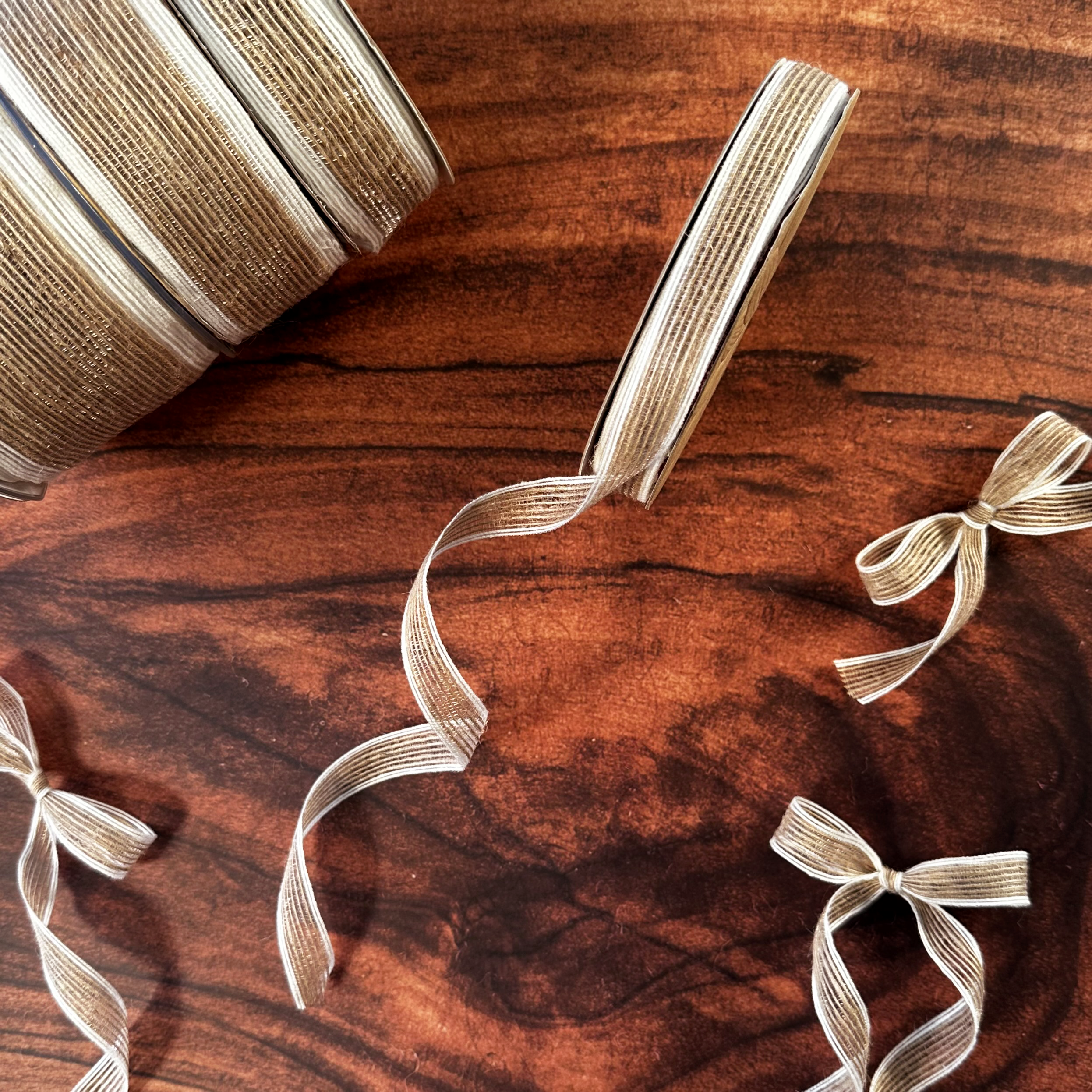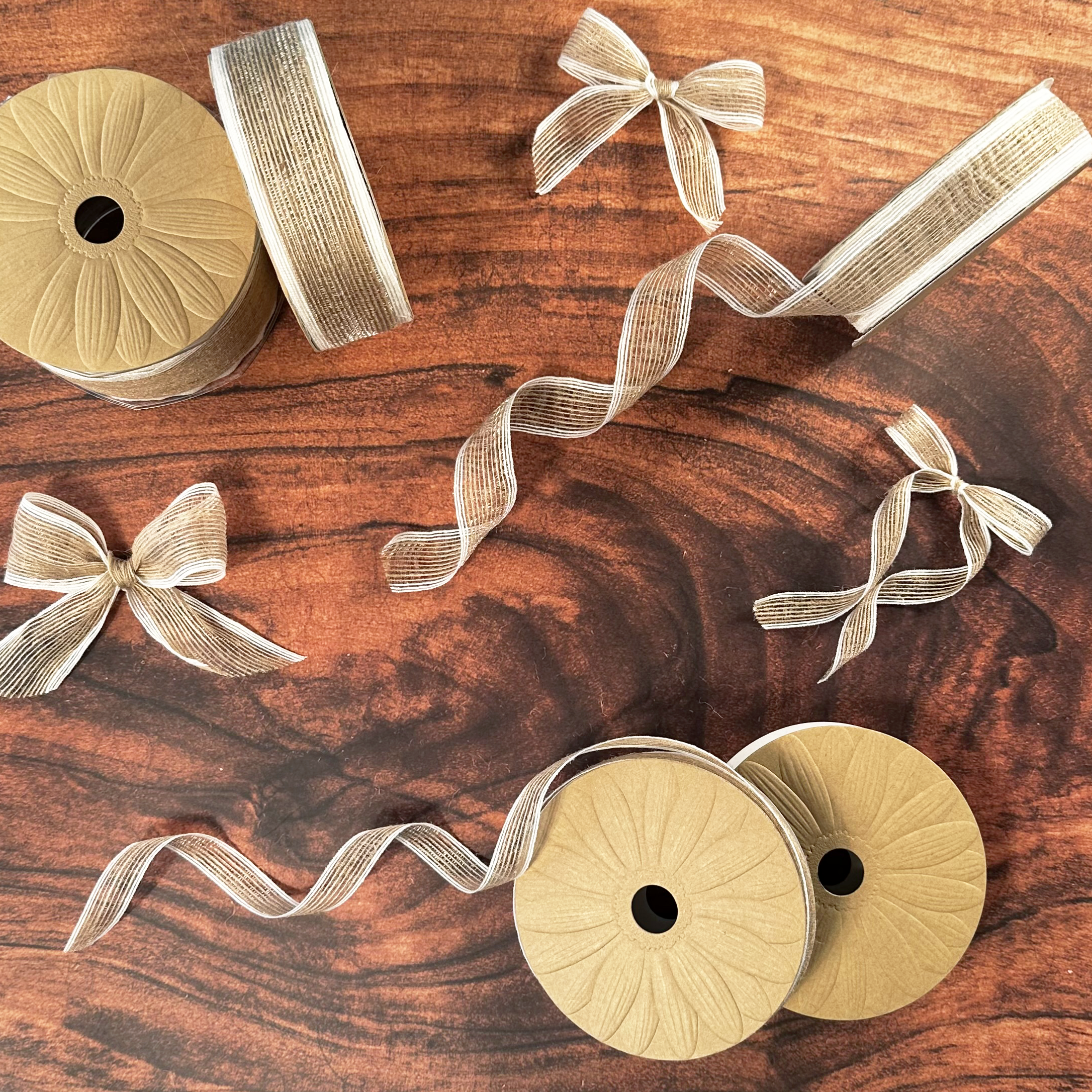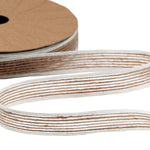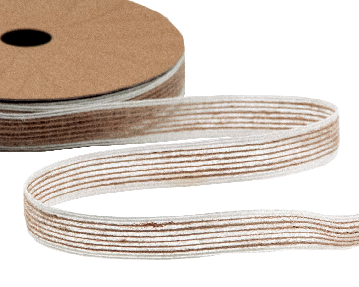 15mm Rustic Jute Ribbon in Natural White. With a natural charm and a handcrafted look, this rustic jute ribbon with white edges is the ideal choice for those seeking simple yet refined decorations. Made from durable, raw fibers, it features a compact, perforated weave that lends a light feel while maintaining good structure. Its soft, versatile texture makes it easy to cut and shape without fraying. Perfect for gift wrapping, party favors, home decorations, centerpieces, floral arrangements, and special event arrangements like weddings and ceremonies. The neutral, natural color pairs elegantly with materials like wood, kraft paper, and flowers, transforming any creative project with a touch of authenticity and warmth. Color Code #1 - PACKAGED IN A 15-M ROLL