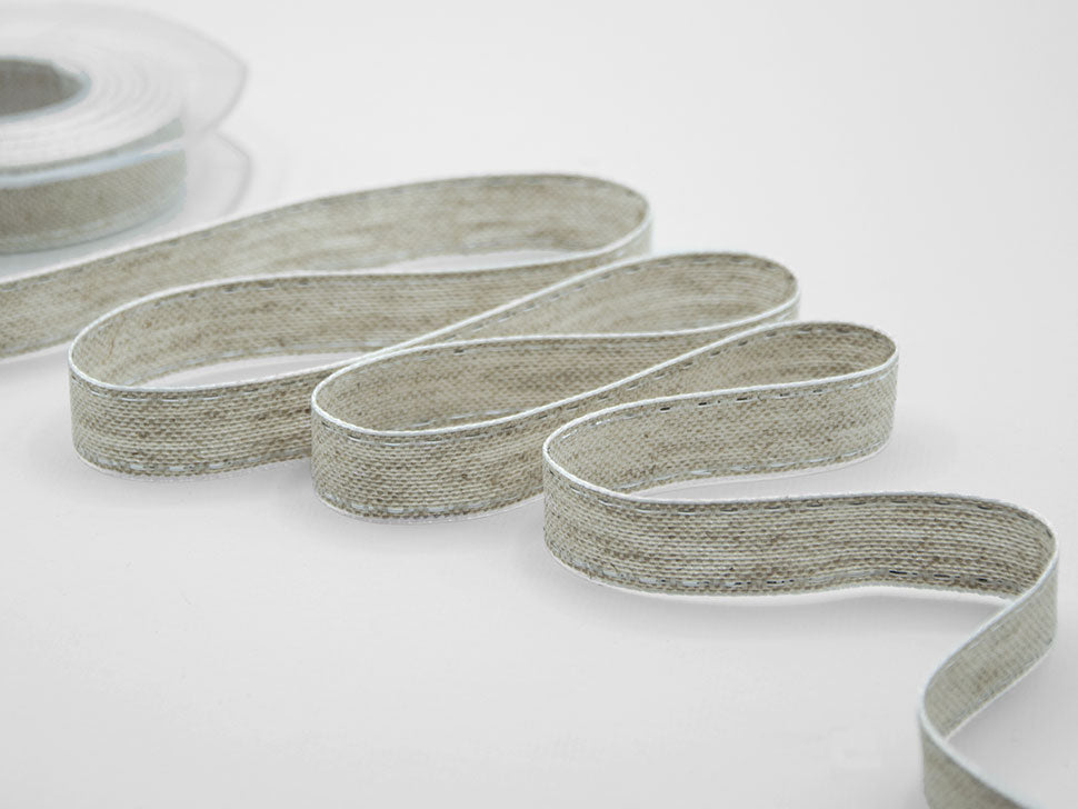 Flax Hemp Ribbon Stitching17 MM Silver. It is a very precious ribbon, in linen, hemp and viscose, synonymous with nature, reminiscent of the canvases of the past. It looks rough, but it's not, it's very easy to work with. It has a hazelnut color, classic and simple. With a rustic appearance, it is actually very elegant and combines the ancient with the modern, the natural tradition with the most refined elegance. It is the ideal complement for handicrafts and can be used very well even in the most elegant ceremonies. This tape conveys warmth and simplicity. Linen and hemp ribbons also exist in the version with stitching, they are very characteristic thanks to their natural colors and their rustic and elegant appearance, perfect to give a chic and natural effect to any type of decoration. Just play with the imagination and use these cloth ribbons for the realization of various DIY and craft projects; they are perfect for the Christmas theme, rustic, country, vintage and shabby and for the creation of favors: baptism, communion, confirmation, graduation, marriage, eighteenth, engagement. Products with high quality material. Color Code# 101 - PACKED IN 10 METER COIL