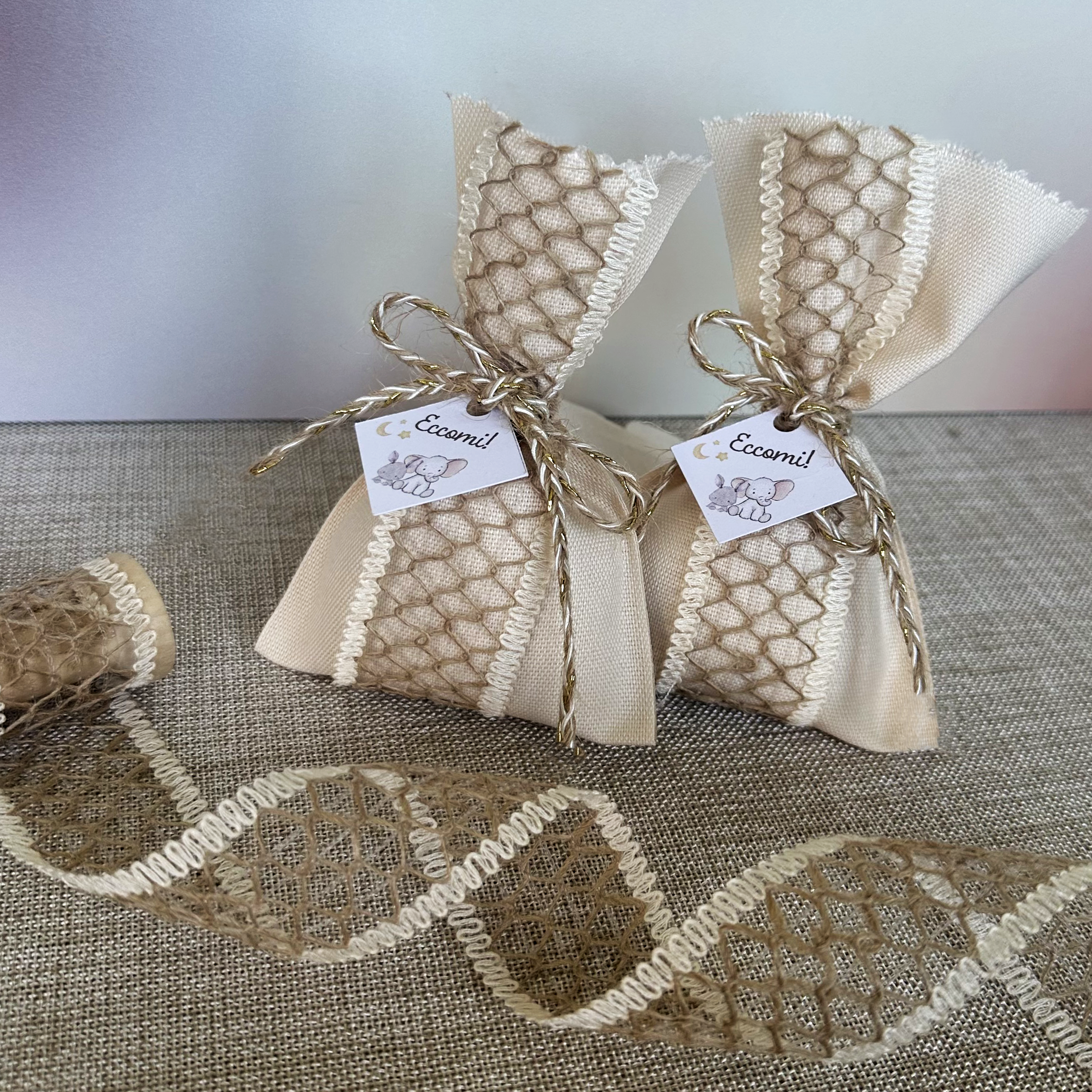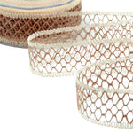 40mm Ivory Openwork Jute Ribbon. It's the ideal choice for those seeking natural, rustic, and timeless decorations. Made from durable, raw fibers, this handcrafted ribbon adds an authentic yet refined touch to gift wrapping, party favors, home decor, and special event settings. Its compact, openwork weave, combined with colorful, finished edges, makes it easy to cut, shape, and use without the risk of fraying. The ribbon holds its shape perfectly over time, making it ideal for even the most elaborate creations. Openwork jute ribbon is soft and versatile, suitable for a variety of uses: from rustic centerpieces to floral arrangements, from wedding accessories to elegant packaging. Perfect for those seeking a simple yet striking detail, capable of transforming any project with natural elegance. Color Code #35 - PACKAGED IN A 15-METER ROLL
