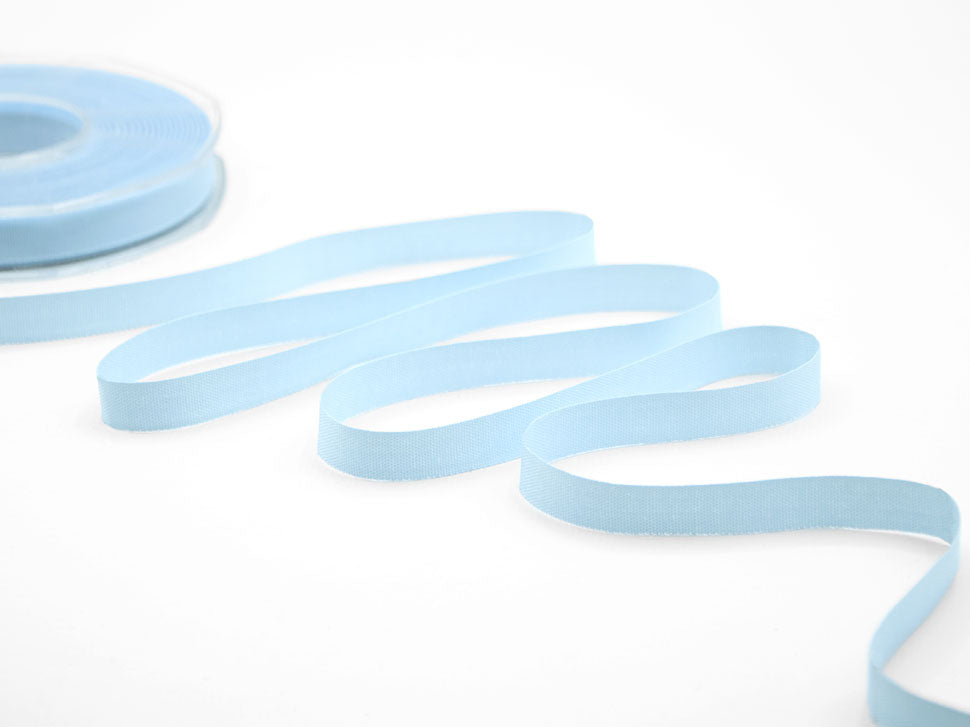 Poly Cotton 10 MM Blue Baby. Polycotton and natural-looking ribbons are in line with green trends to create packages and decorations with a rustic or raw effect. Highly appreciated for its characteristics are cotton polyester ribbons. Opaque, natural-looking, it is pleasant to the touch because it is soft and warm, looks slightly sweaty. It is easily worked and used more and more often for the creation of luxury gift boxes, shopper handles, wedding favor creations, Christmas decorations, floral decorations and food packaging. Also appreciated by important fashion brands it has been chosen for the customization of their logo tape. Like all our tapes it is bored very easily and does not fray at the cut. Cotton-type fabric tape is produced in a wide range of colors and heights.. Color Code# 593 - PACKED IN 25 METER COIL