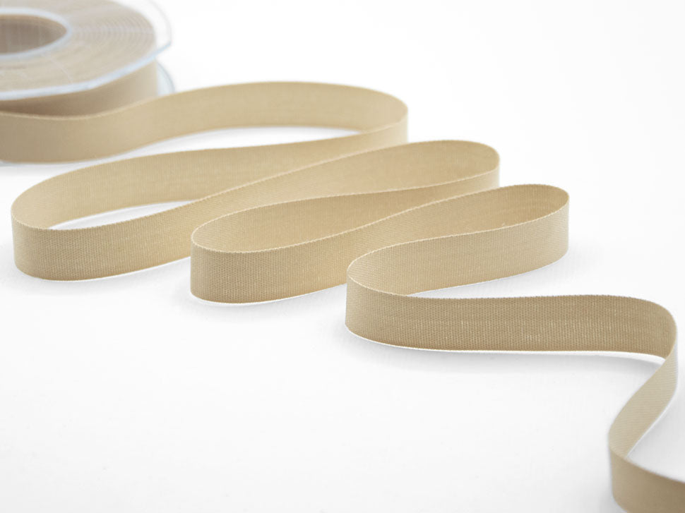 Poly Cotton 15MM Beige. The polycotton and natural-looking ribbons are in line with green trends to create packages and decorations with a rustic or rough effect. Much appreciated for its characteristics are the cotton polyester ribbons. Opaque, with a natural appearance, it is pleasant to the touch because it is soft and warm, it feels slightly plush. It works easily and is used more and more often for the creation of luxury gift boxes, for shopper handles, for the creation of wedding favors, for Christmas decorations, for floral decorations and for food packaging. Also appreciated by important fashion brands, it was chosen for the personalization of their ribbon with logo. Like all our ribbons, it ties very easily and does not fray when cut. The cotton-like fabric tape is produced in a wide range of colors and heights .. Color code # 2 - PACKED IN 25 METERS REEL
