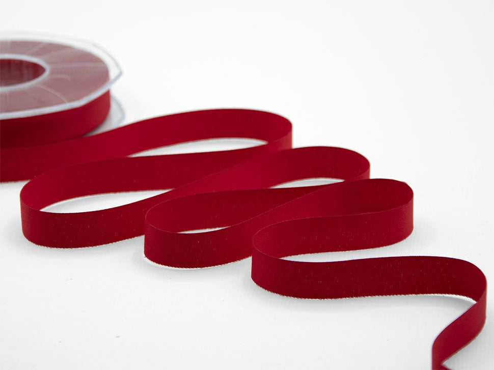 Poly Cotton 15 MM Red. Polycotton and natural-looking ribbons are in line with green trends to create packages and decorations with a rustic or raw effect. Highly appreciated for its characteristics are cotton polyester ribbons. Opaque, natural-looking, it is pleasant to the touch because it is soft and warm, looks slightly sweaty. It is easily worked and used more and more often for the creation of luxury gift boxes, shopper handles, wedding favor creations, Christmas decorations, floral decorations and food packaging. Also appreciated by important fashion brands it has been chosen for the customization of their logo tape. Like all our tapes it is bored very easily and does not fray at the cut. Cotton-type fabric tape is produced in a wide range of colors and heights.. Color Code#31 - PACKED IN 25-METER COIL