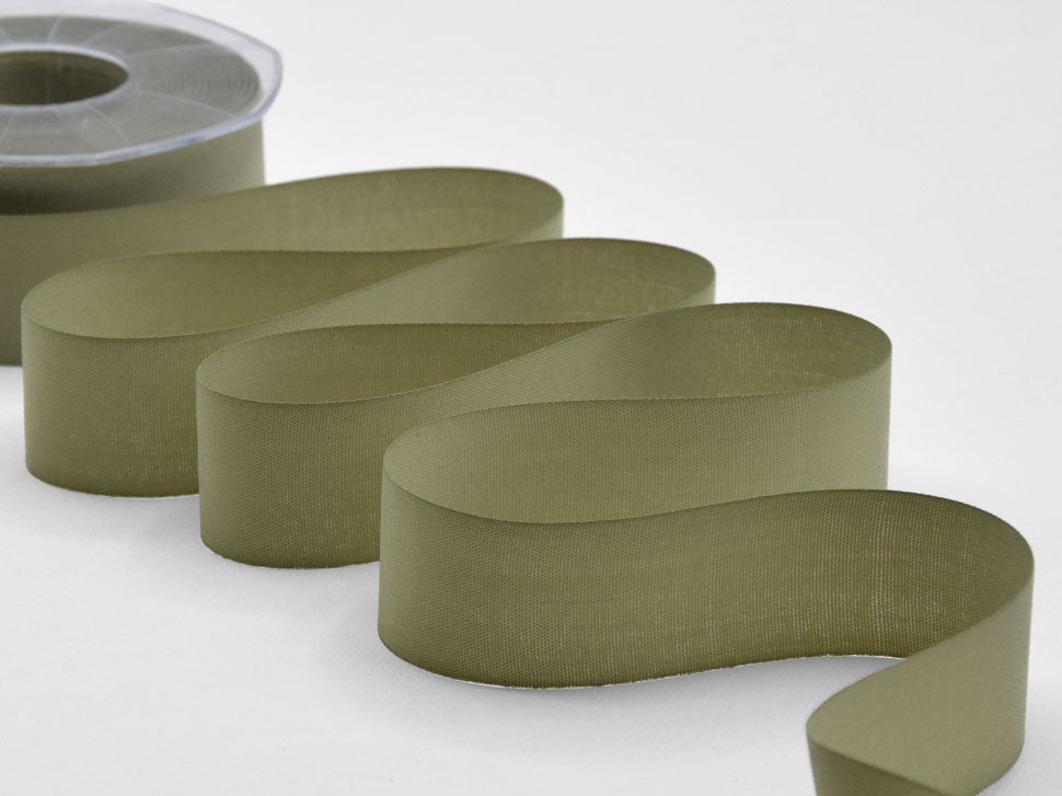 Polycotton 35 mm Sage. The polycotton ribbons are in line with the green trends to make packaging and decorations with a rustic or rough effect. Much appreciated for its characteristics are the cotton polyester ribbons. Matte, natural looking, it is pleasant to the touch because it is soft and warm, it looks slightly sweaty. It is easy to work with and is increasingly used for luxury gift box creations, shopper handles, wedding favors, Christmas decorations, floral decorations and food packaging. Also appreciated by major fashion brands was chosen for the customization of their ribbon with logo. Like all our ribbons is very easy to tie and does not fray. The cotton-type fabric ribbon is produced in a wide range of colors and heights.. Color code# 15 - PACKED IN REEL OF 25 METERS