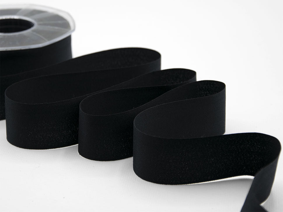 Poly Cotton 35 MM Black. Polycotton and natural-looking ribbons are in line with green trends to create packages and decorations with a rustic or raw effect. Highly appreciated for its characteristics are cotton polyester ribbons. Opaque, natural-looking, it is pleasant to the touch because it is soft and warm, looks slightly sweaty. It is easily worked and used more and more often for the creation of luxury gift boxes, shopper handles, wedding favor creations, Christmas decorations, floral decorations and food packaging. Also appreciated by important fashion brands it has been chosen for the customization of their logo tape. Like all our tapes it is bored very easily and does not fray at the cut. Cotton-type fabric tape is produced in a wide range of colors and heights.. Color Code# 33 - PACKED IN 25 METER COIL